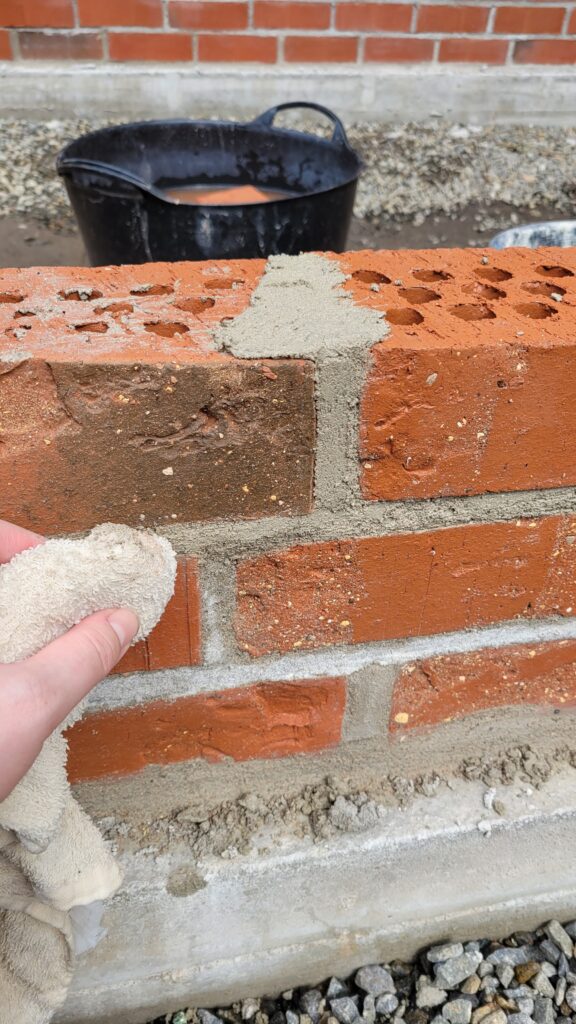 Pepa zdít umí, ale tohle bylo poprvé kdy stavěl z pohledových cihel, navíc stařených, takže hodně křivých. Už u prvního šáru jsme zjistili, že nejefektivnější bude, když Pepa bude zdít, a já po něm budu spáry začišťovat. I tak nám ale trval jeden šár celý den.