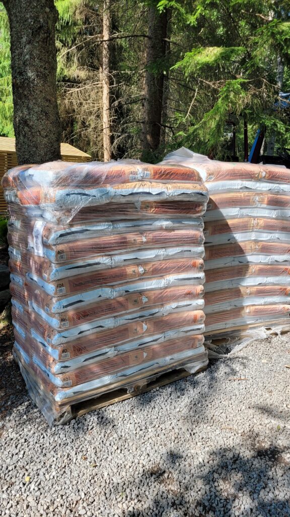 Nepodařilo se nám lokálně koupit big bag kvalitní hlíny, ale sehnala jsem v akci dvě plné palety pytlované, s dopravou levněji než běžně kupujeme v blízkých obchodech. Jednou v životě jsem tak zažila klid na duši, že mi nedochází hlína, a hlavně jsme si ušetřili přehazování skoro 150 pytlů do auta a na káru.