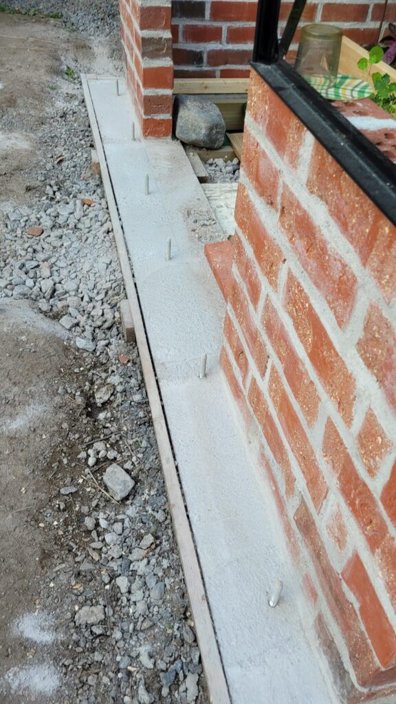 Cihlová podezdívka je krásná, ale bylo to náročnější, než jsme čekali.