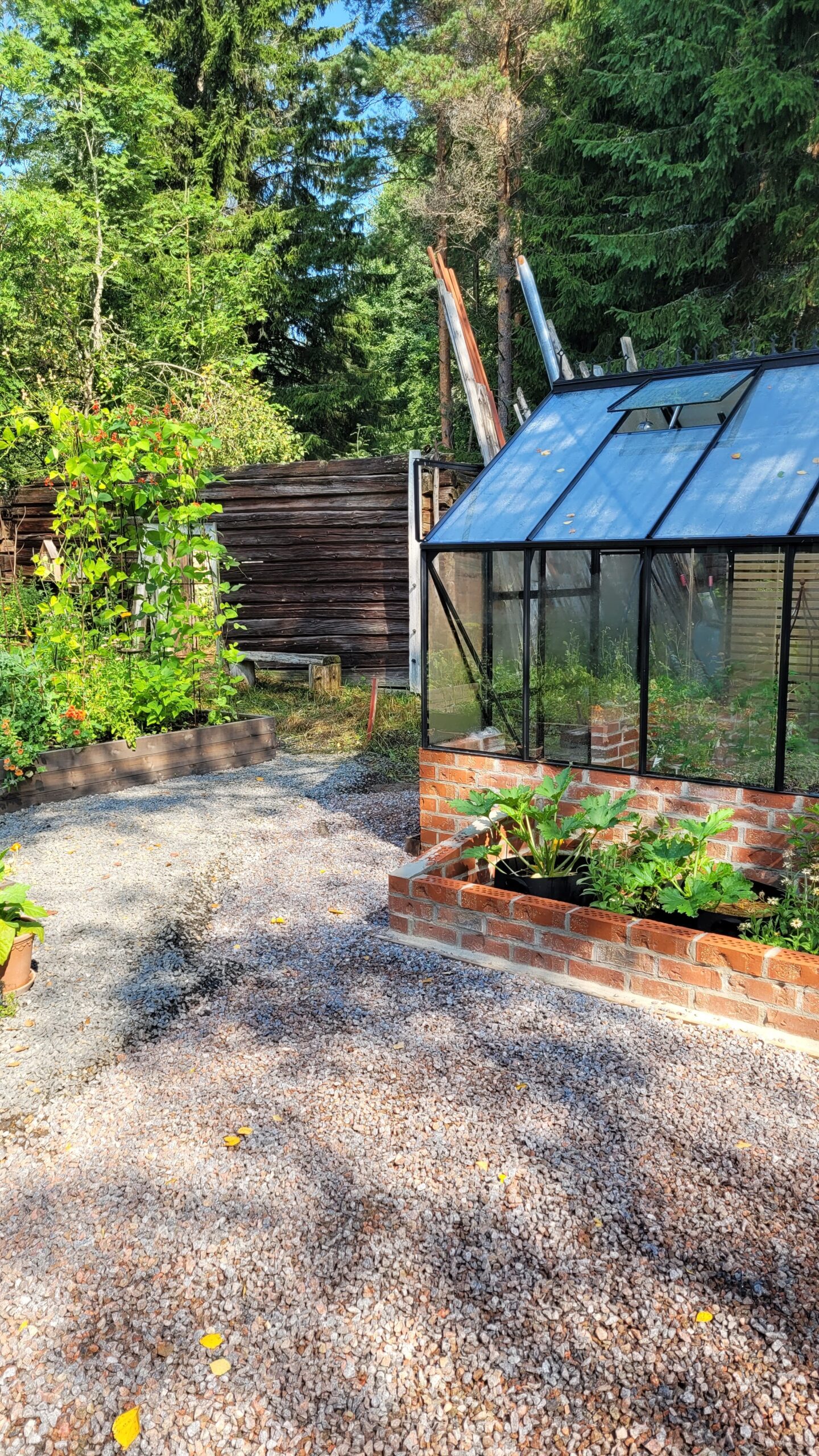 To je zase nadhera 😻 tento sklenik obdivuji a ta vase precizni prace, uplne skoda ho umazat hlinou, ja bych do nej chodila pit kafe a dala si tam kresilka 😁 cihlicky jsou dokonale. A ty palety hliny mi rozproudi krev, vic jak nova kabelka 😆 Uroda byla letos mizerna i u nas, moc prselo, vse plesnivelo. Rajcata visi zelena premrzla venku a uz trochu snezilo. Vedle skleniku mam hortenzie, ale asi udelam zahon na cukety, jako mate vy. Vypada to skvele. Jste uzasne sikovni oba.