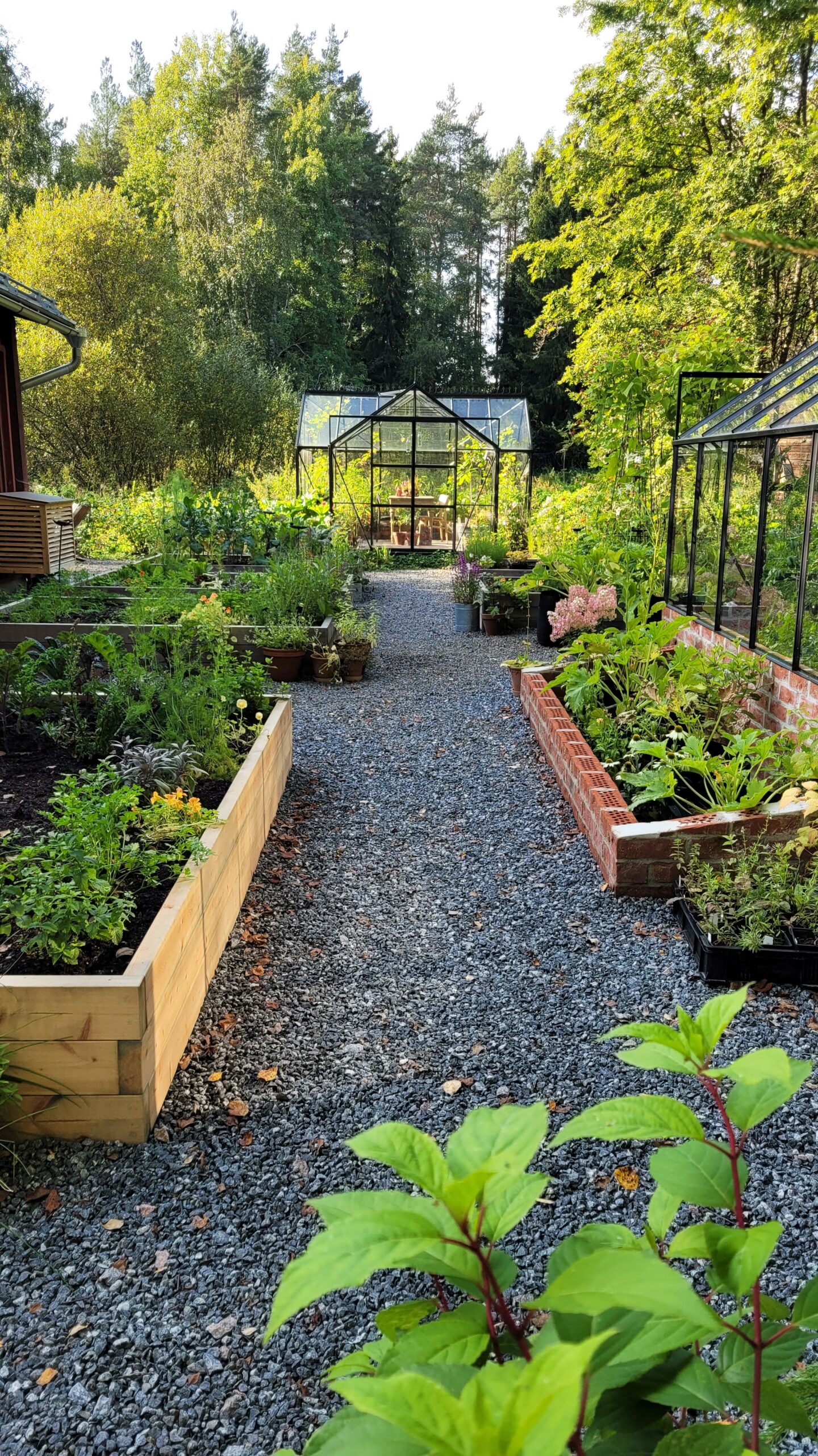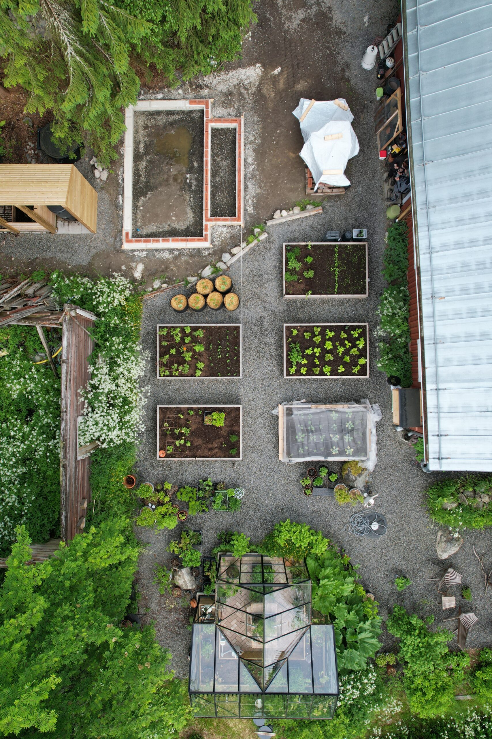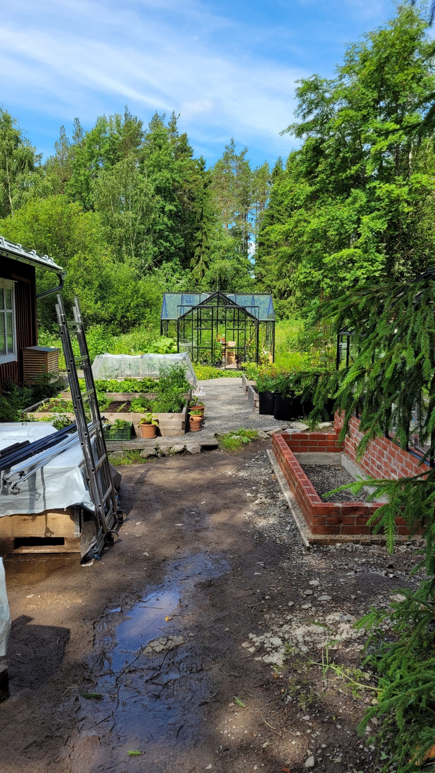 Dlážděná část podlahy bude vytápěná a v prostoru vedle dveří bude přivedená voda. Nic z toho jsme ale zatím dokončit nestihli, stejně jako víka na pařník. Zvládli jsme však přidat ještě poslední chybějící záhon.