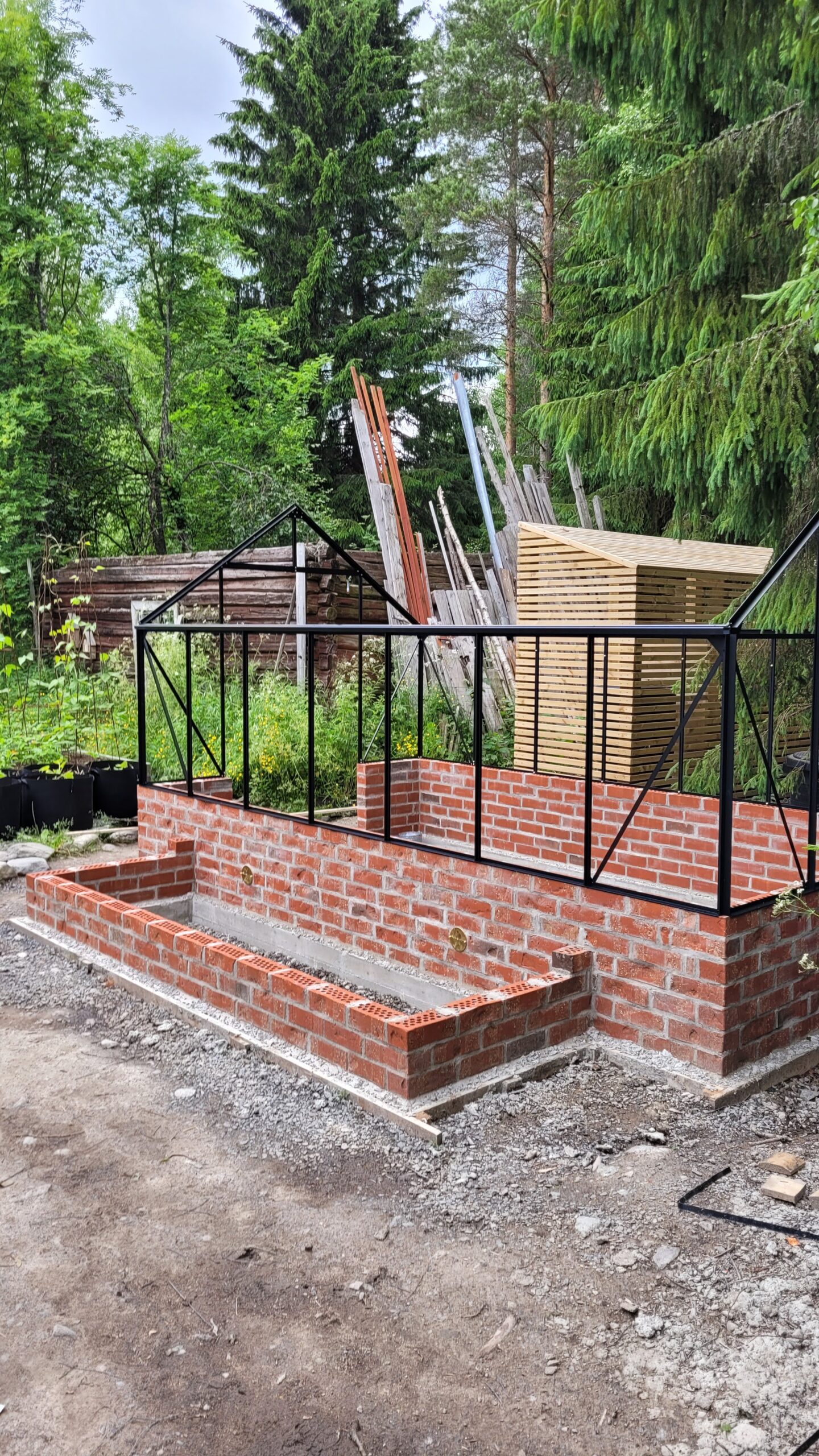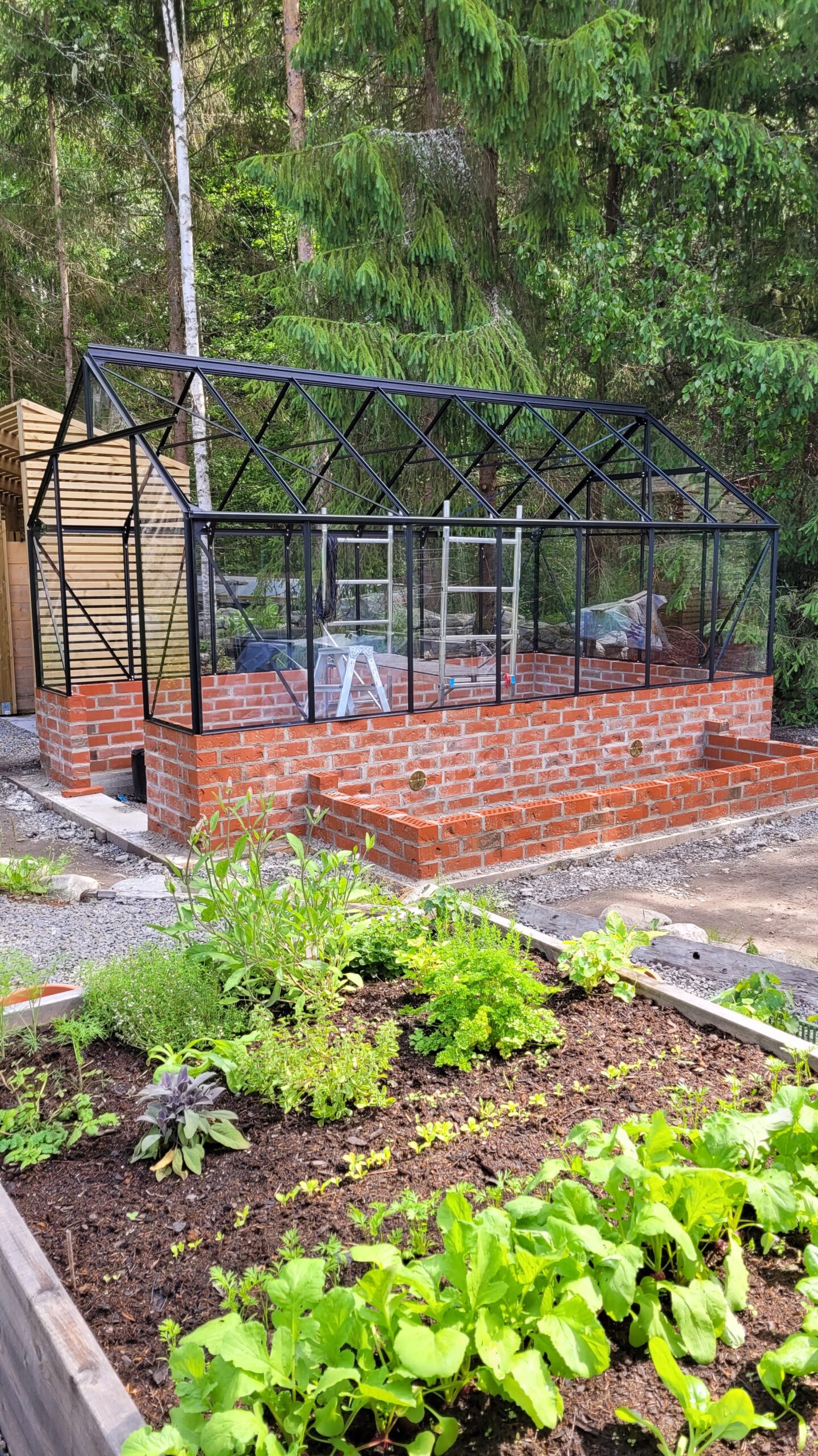 Cihly na podezdívku jsem vybírala dlouho. Nakonec jsem vybrala patinované od finského výrobce. Mají krásnou barvu a v tom samém odstínu prodávají i obklad, který je možné použít jako dlažbu, kterou plánujeme stejně jako v prvním skleníku. I s dopravou to celé vyšlo levněji než staré cihly přes inzerát, nebo lokálně sehnatelné moderní cihly. Ale bez problémů to neproběhlo…