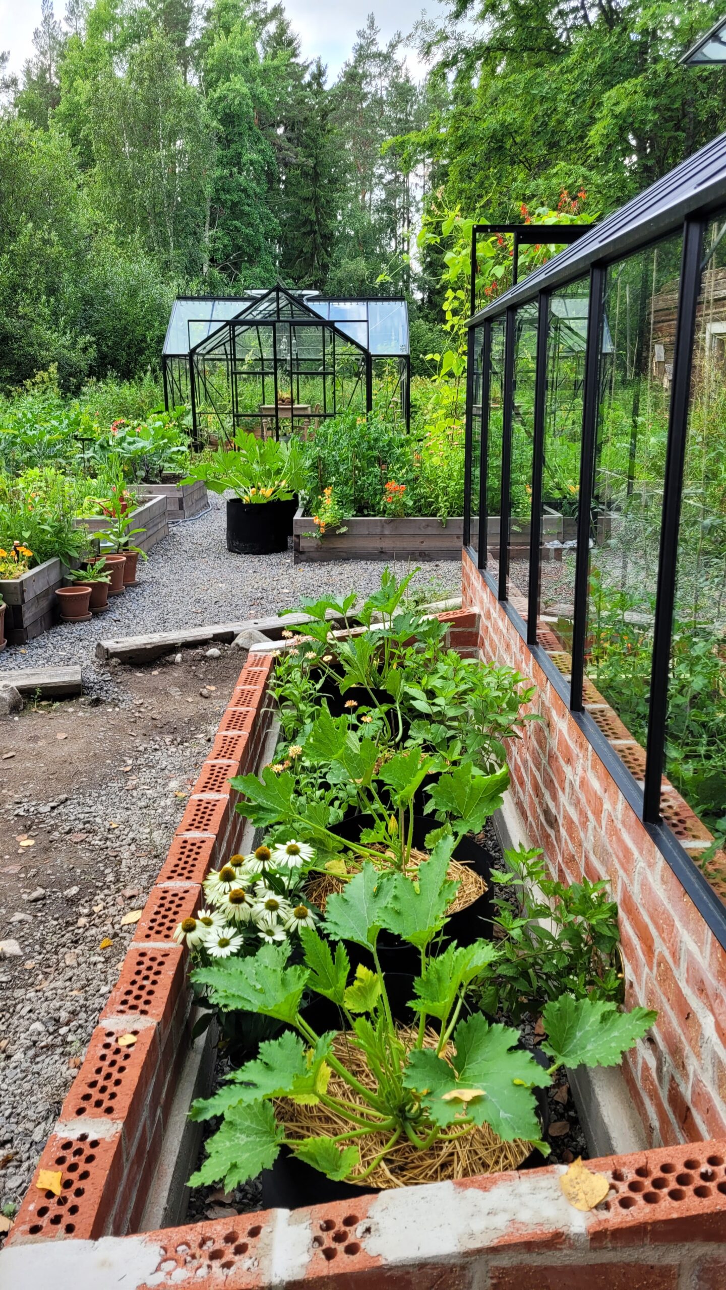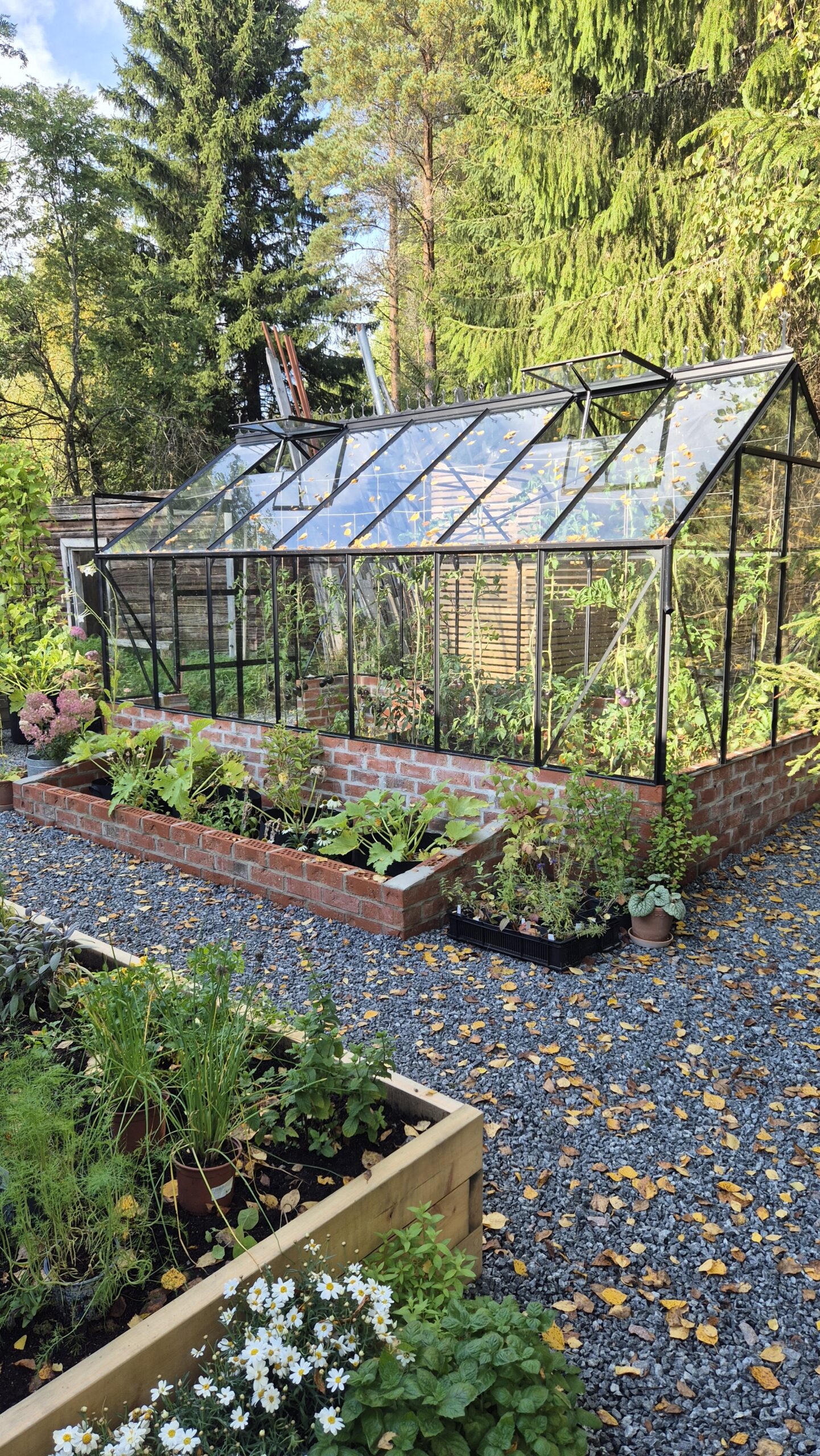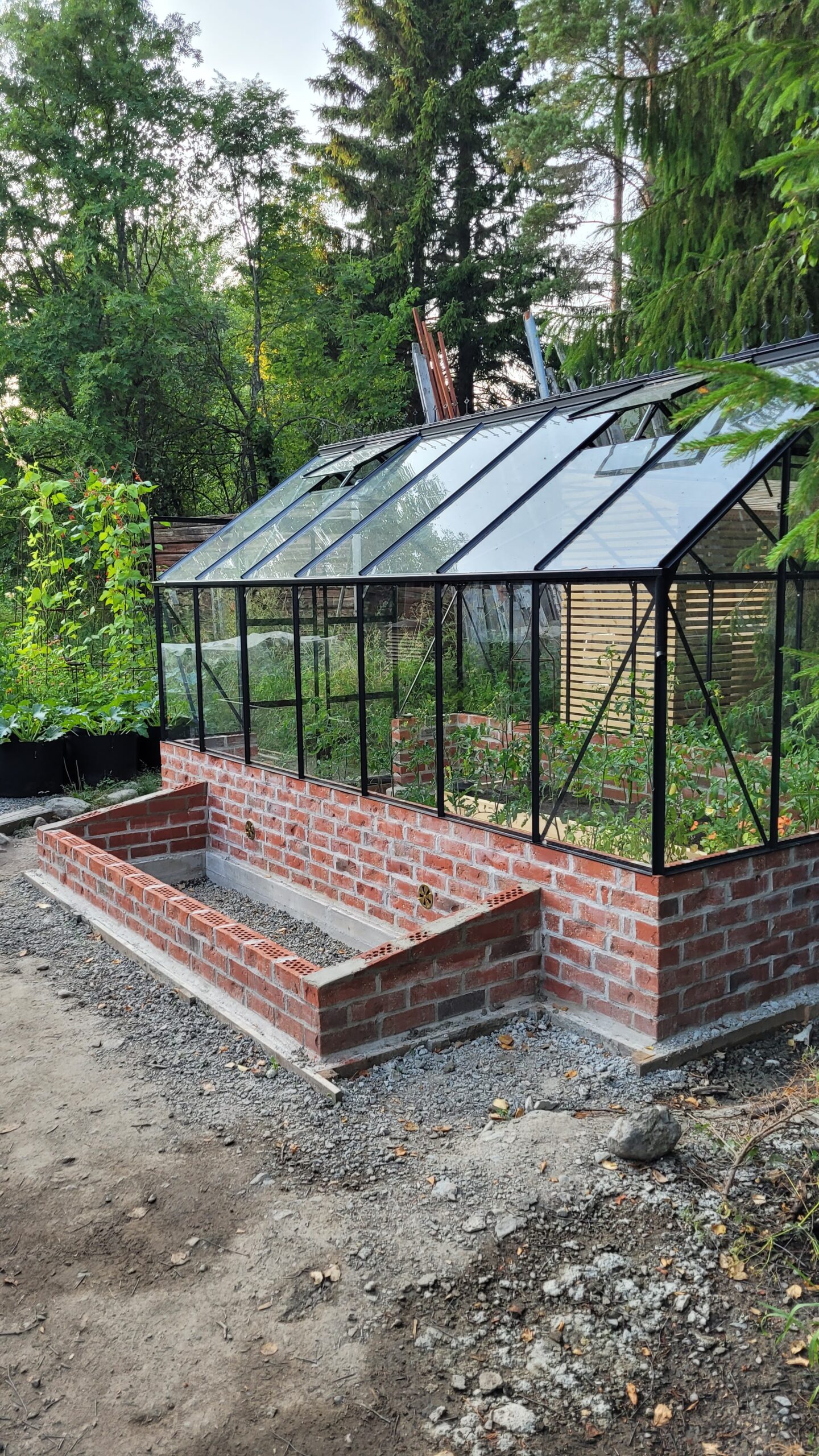 To je zase nadhera 😻 tento sklenik obdivuji a ta vase precizni prace, uplne skoda ho umazat hlinou, ja bych do nej chodila pit kafe a dala si tam kresilka 😁 cihlicky jsou dokonale. A ty palety hliny mi rozproudi krev, vic jak nova kabelka 😆 Uroda byla letos mizerna i u nas, moc prselo, vse plesnivelo. Rajcata visi zelena premrzla venku a uz trochu snezilo. Vedle skleniku mam hortenzie, ale asi udelam zahon na cukety, jako mate vy. Vypada to skvele. Jste uzasne sikovni oba.