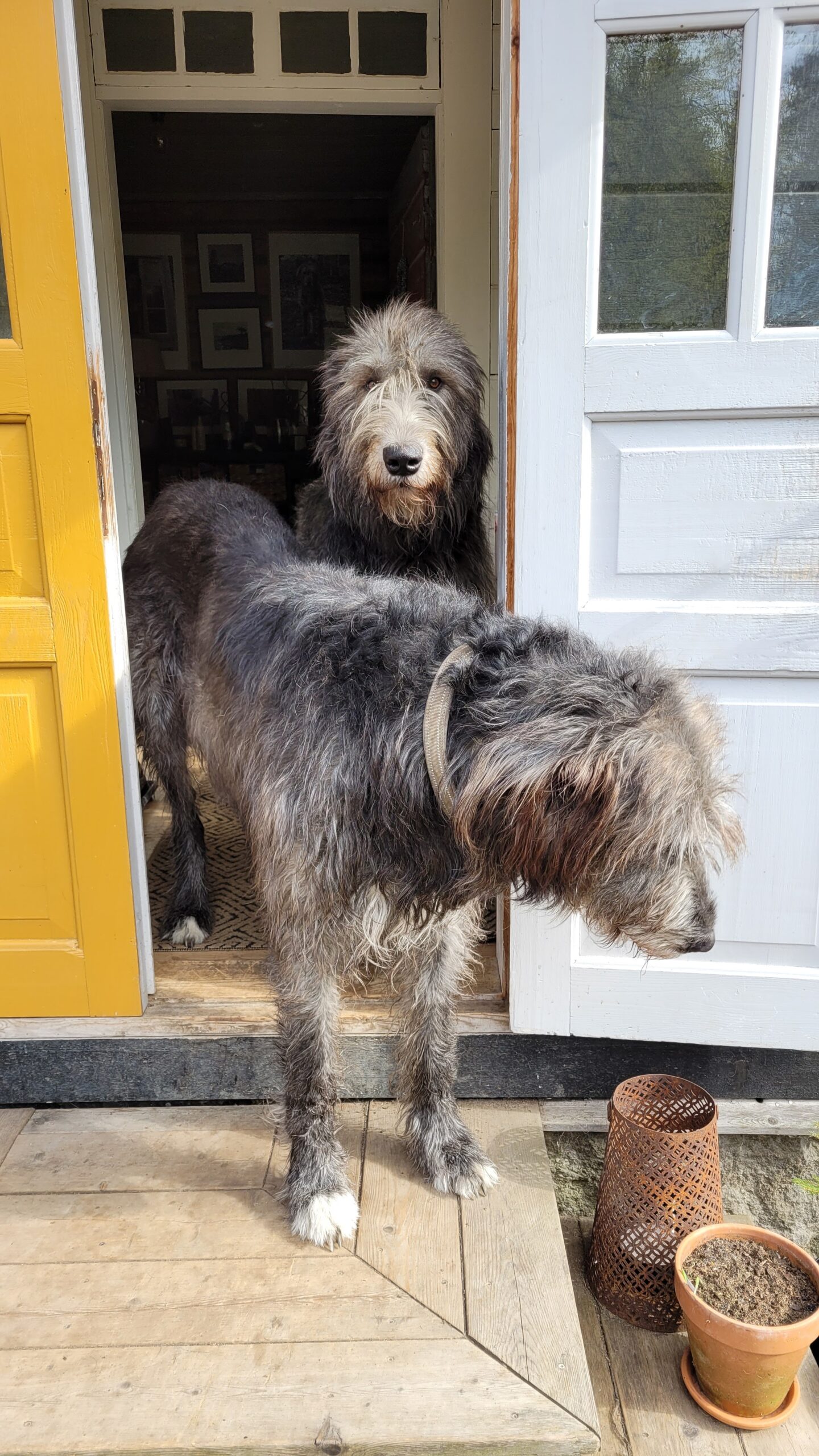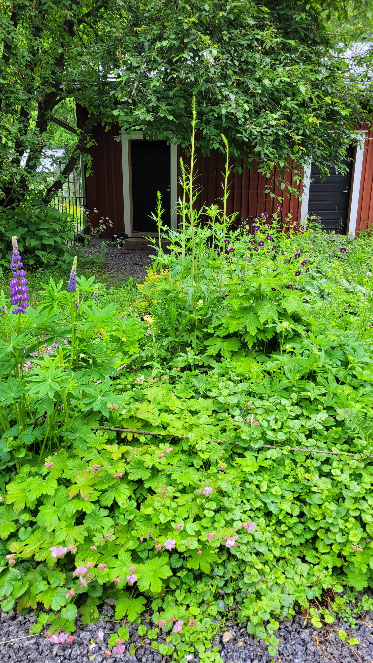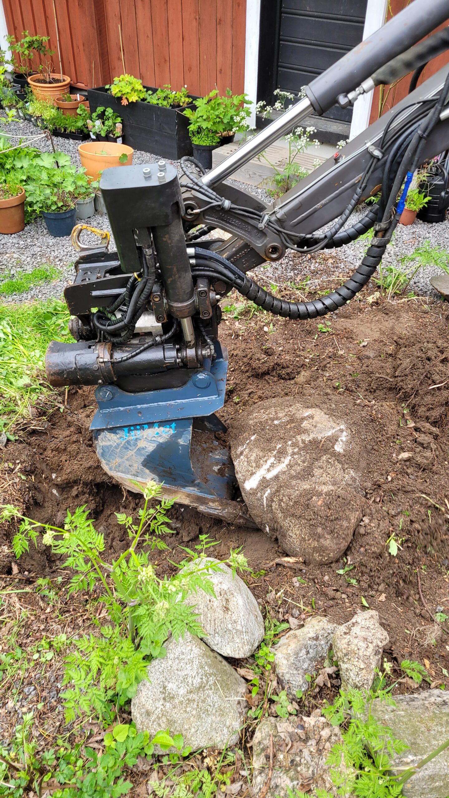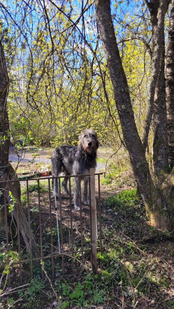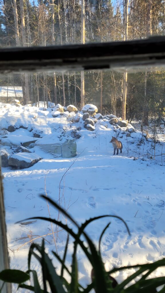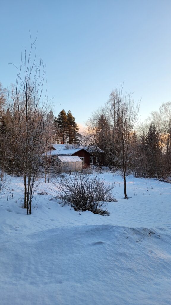 Podařilo se nám sehnat už trochu větší plodící strom (finská odrůda Valkeakuulas), tak snad přežije první zimu. Na práce samozřejmě dohlížel Alvar… kterého jsme nakonec pro jeho vlastní dobro museli zavřít do verandy…