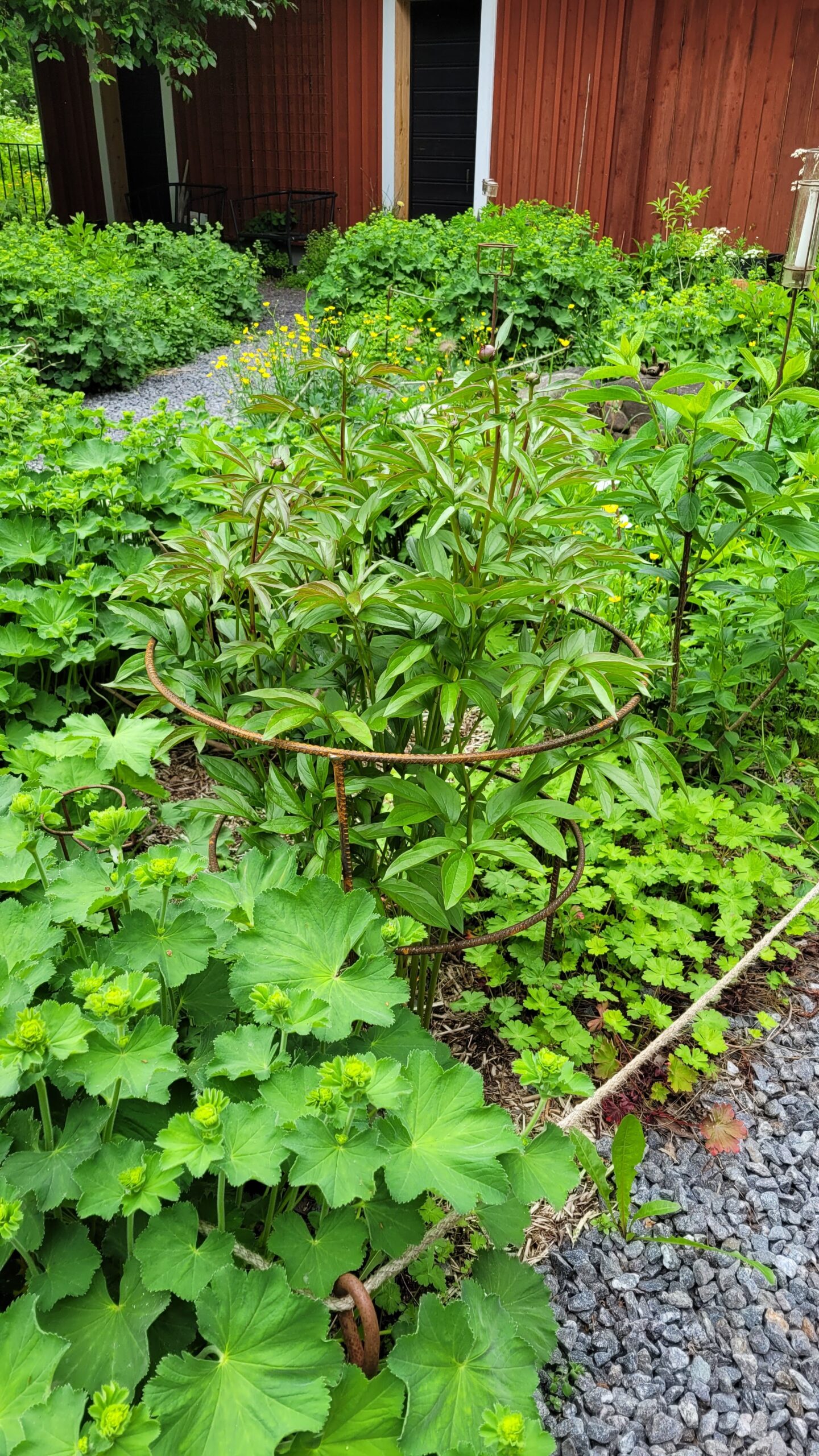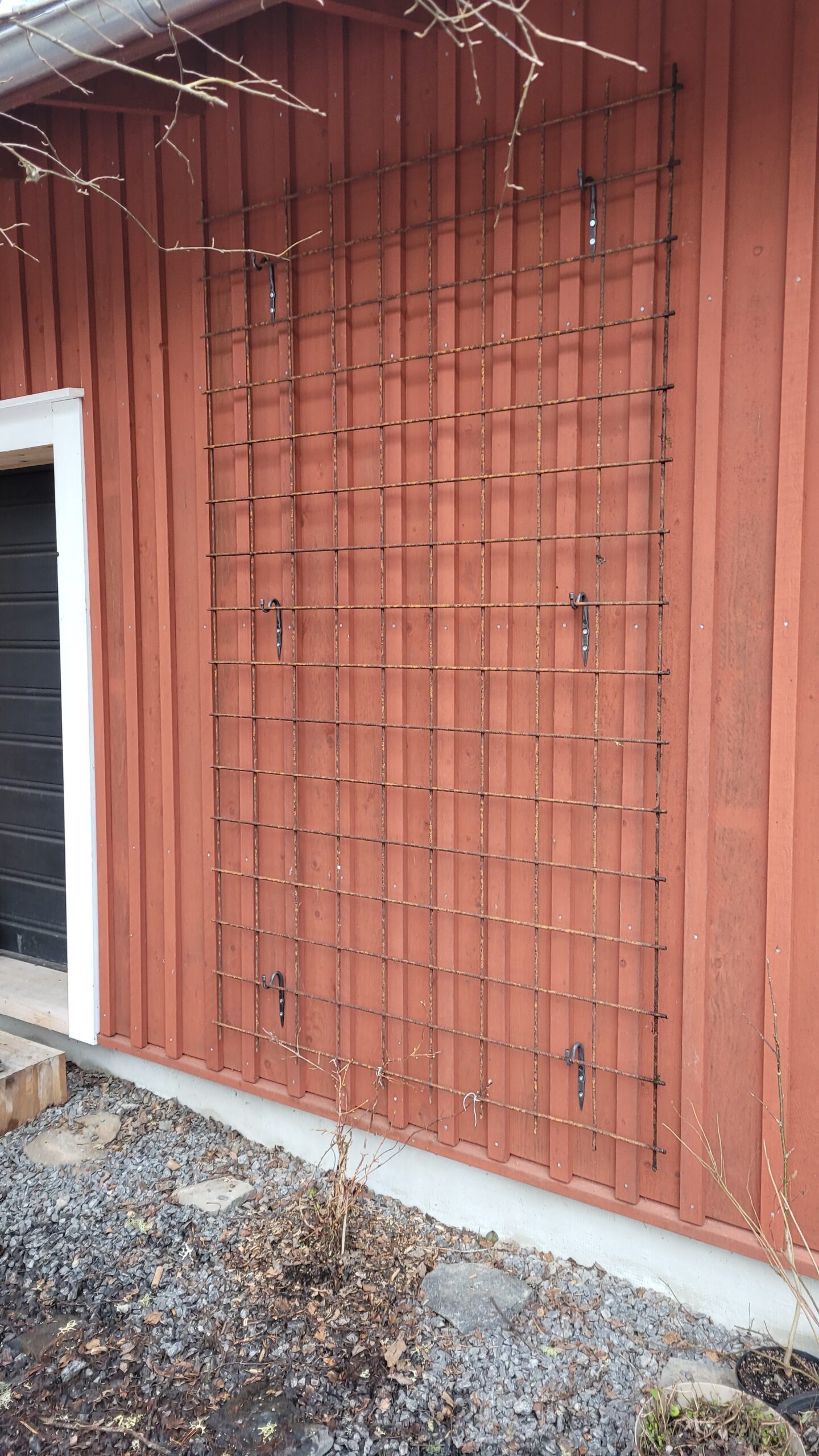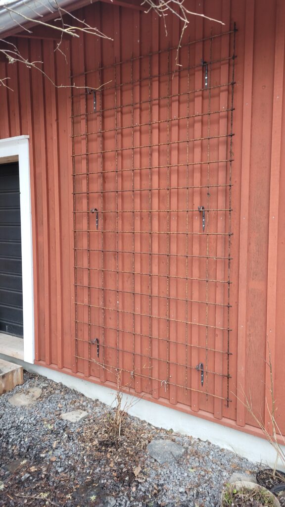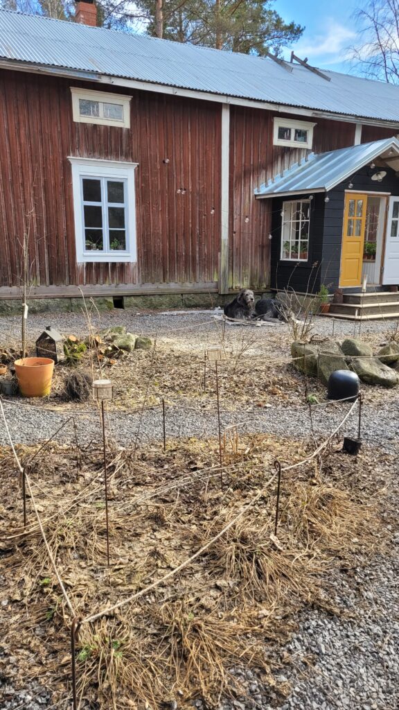 Konečně jsme se dopracovali k zavěšení kari sítě pro popínavou hortenzii…. Zasazenou už ji sice máme roky, ale podle všeho má pomalý start, a nám ji navíc před časem oholili psí kluci…. tak uvidíme…