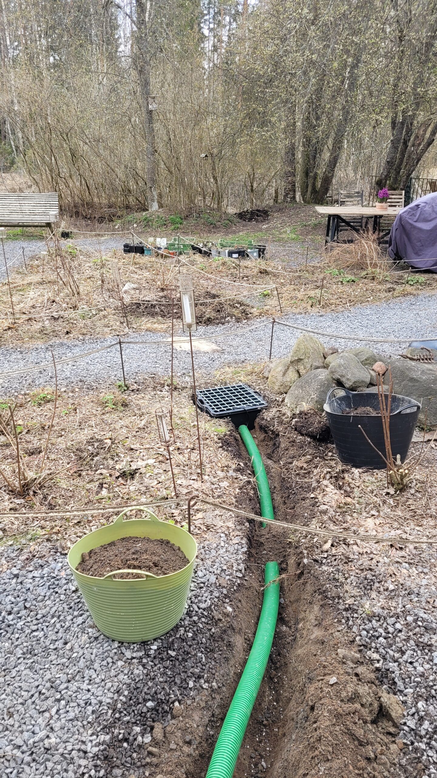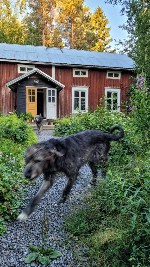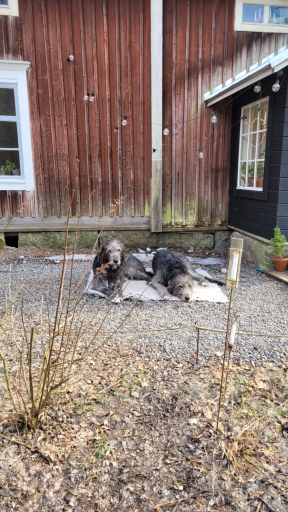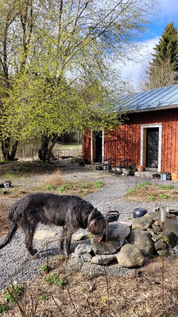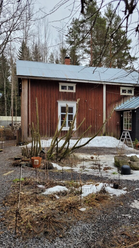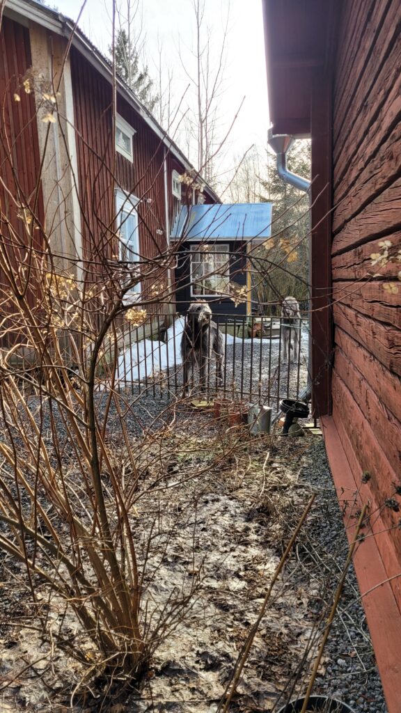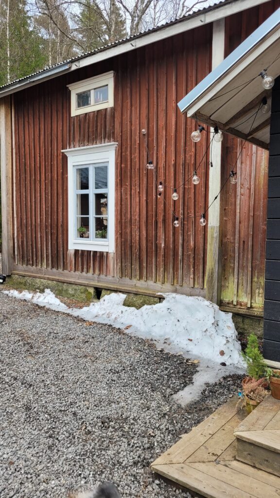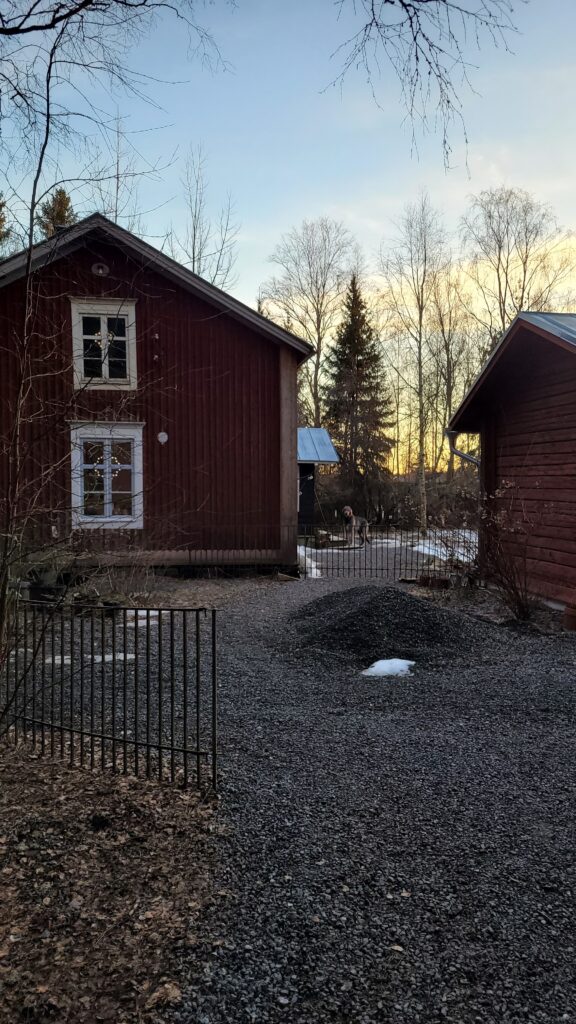 Pověsili jsme pár nových ptačích budek, začali připravovat terén pod skleník, a také jsem si po letech toužení pořídila houpací lavici – retro model finské firmy Varax. Dlouho jsem odolávala, protože lavici na sezení na dvoře jsme měli. Ta byla ve špatném stavu, a Pepa ji před pár lety poopravil, nicméně nám ji následně okousala štěňata, a ulomilo se pár dalších špruslí. Pořád půjde opravit, ale už to není projekt na pár hodin + nátěr, ale bude potřeba ji nejspíš celou rozebrat…. s naší morálkou projekt na několik let, no.