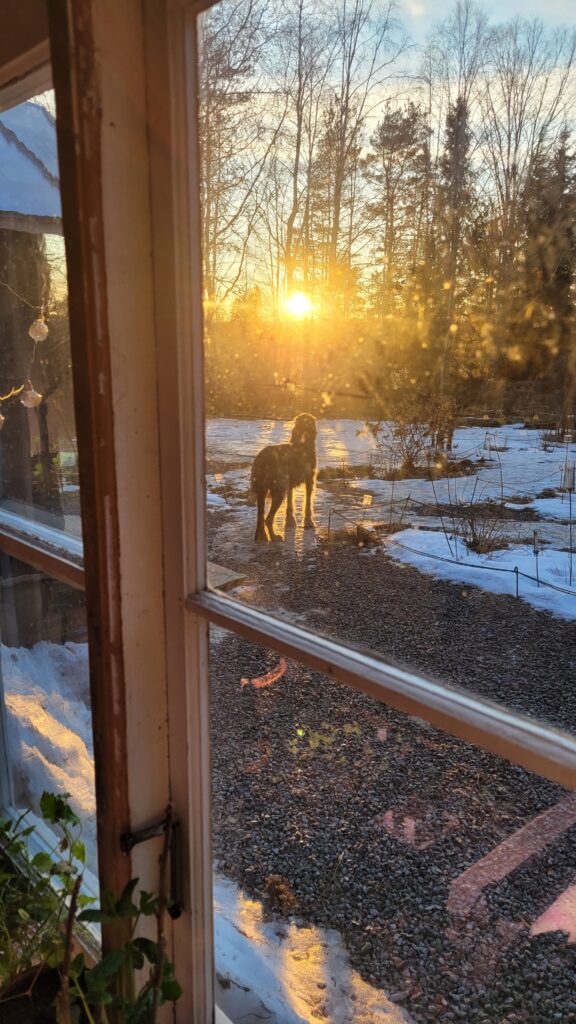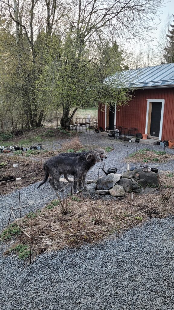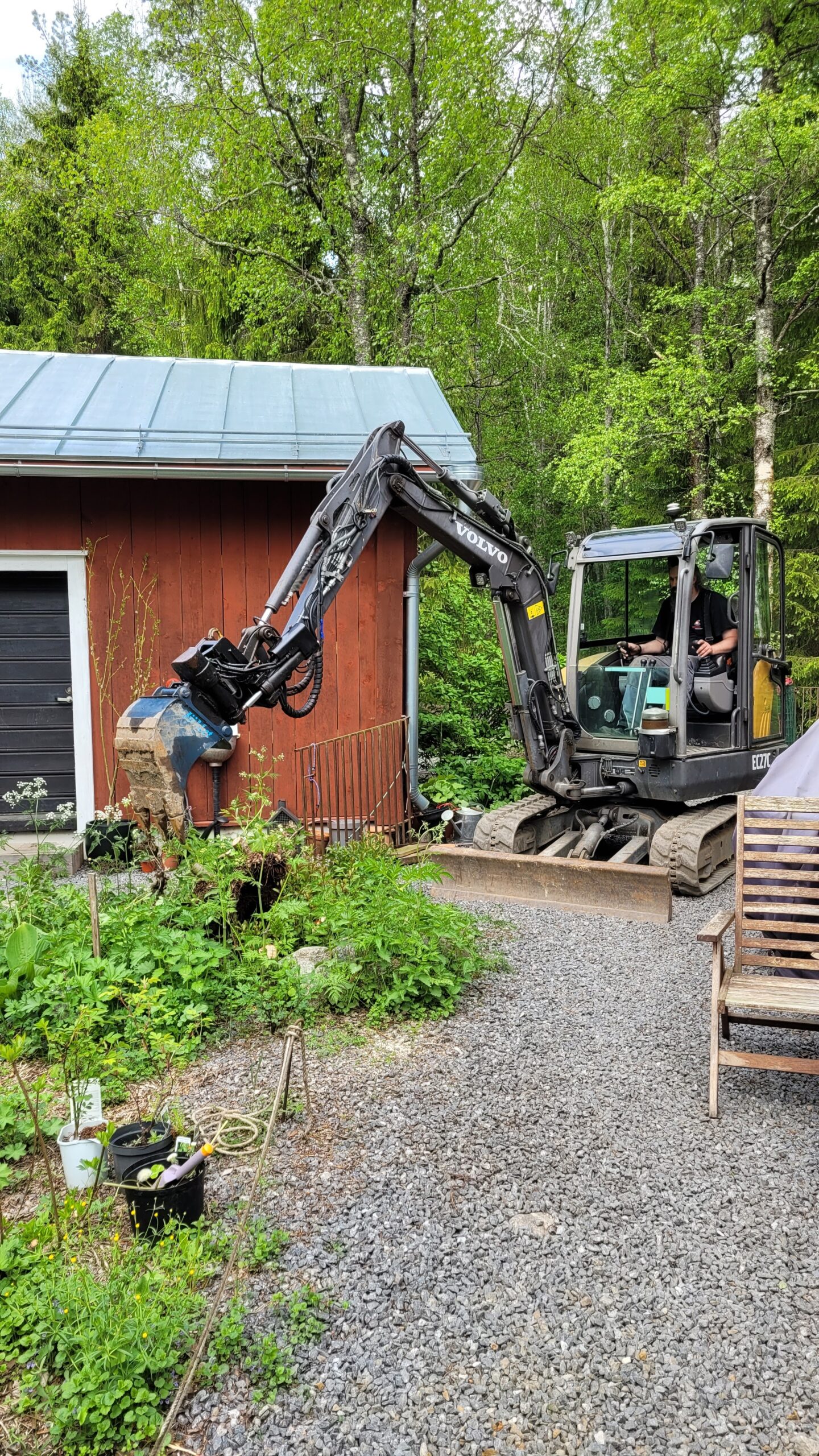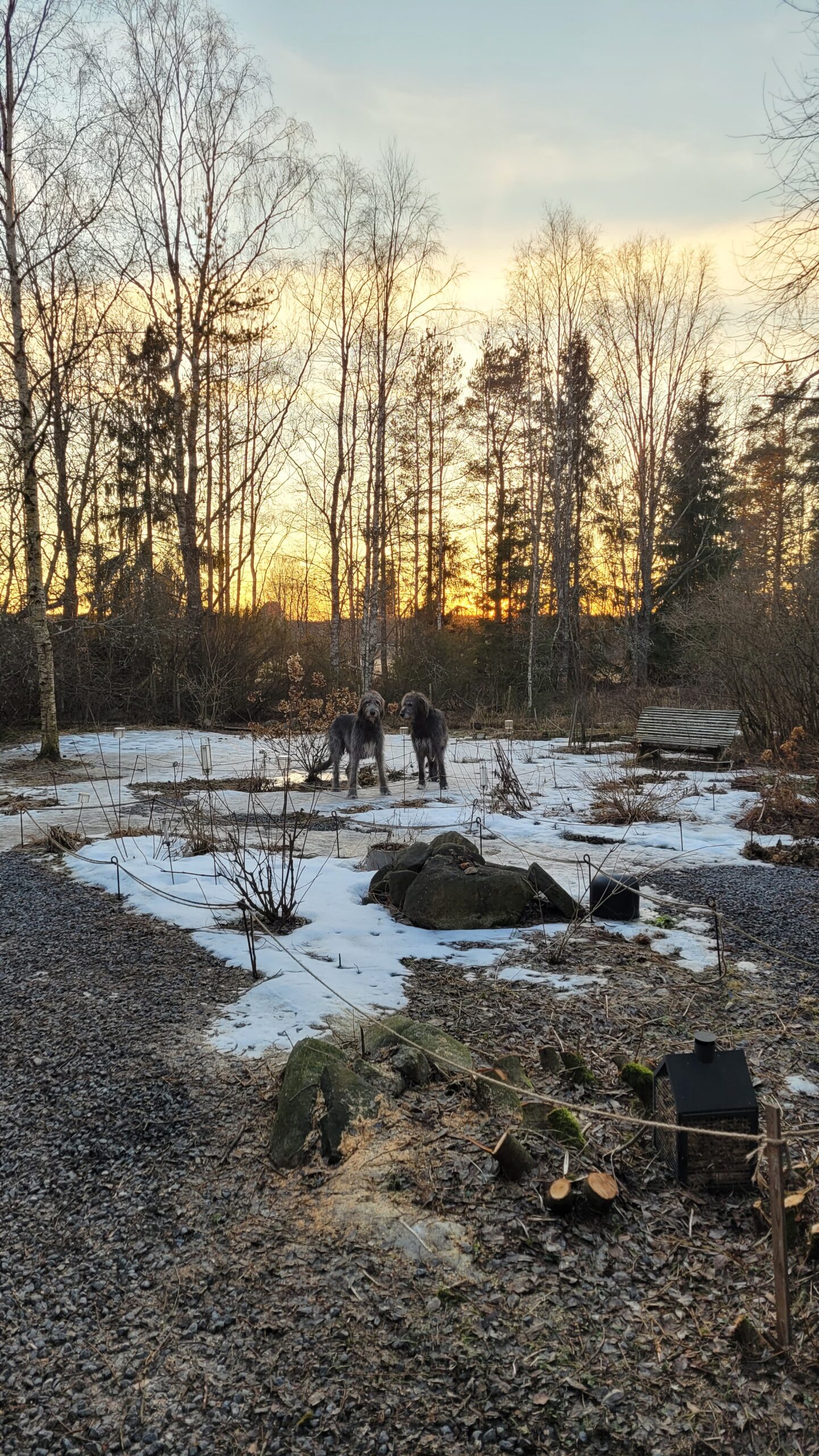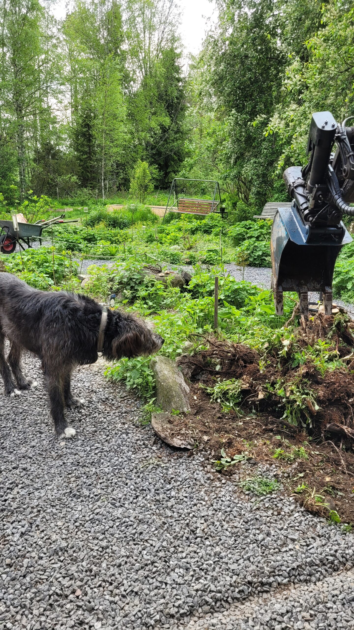 Pověsili jsme pár nových ptačích budek, začali připravovat terén pod skleník, a také jsem si po letech toužení pořídila houpací lavici – retro model finské firmy Varax. Dlouho jsem odolávala, protože lavici na sezení na dvoře jsme měli. Ta byla ve špatném stavu, a Pepa ji před pár lety poopravil, nicméně nám ji následně okousala štěňata, a ulomilo se pár dalších špruslí. Pořád půjde opravit, ale už to není projekt na pár hodin + nátěr, ale bude potřeba ji nejspíš celou rozebrat…. s naší morálkou projekt na několik let, no.