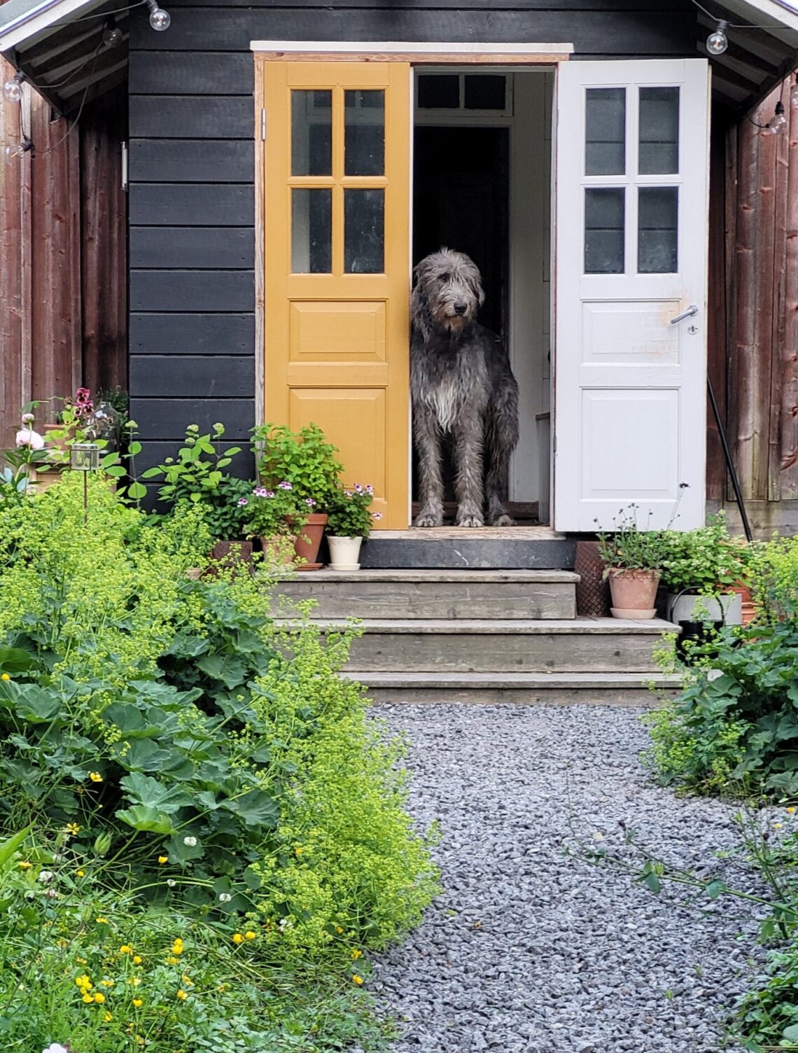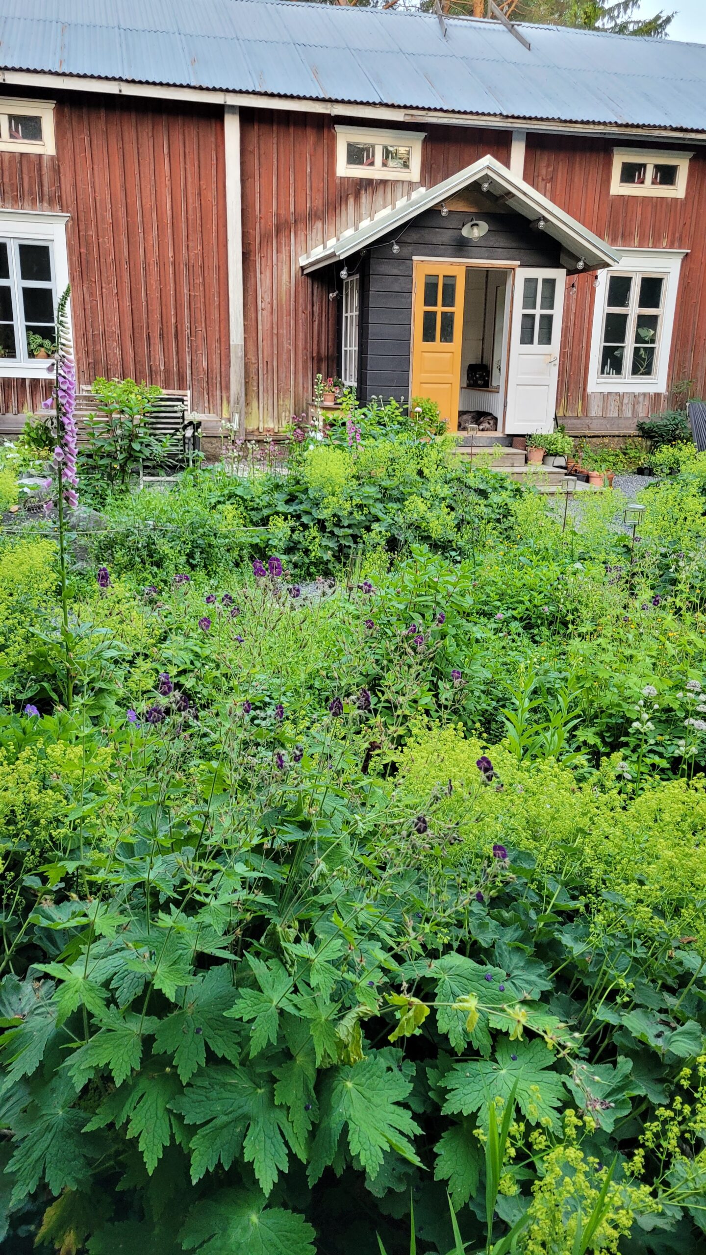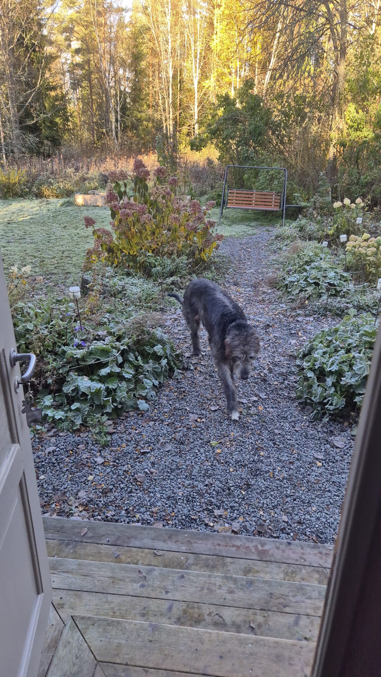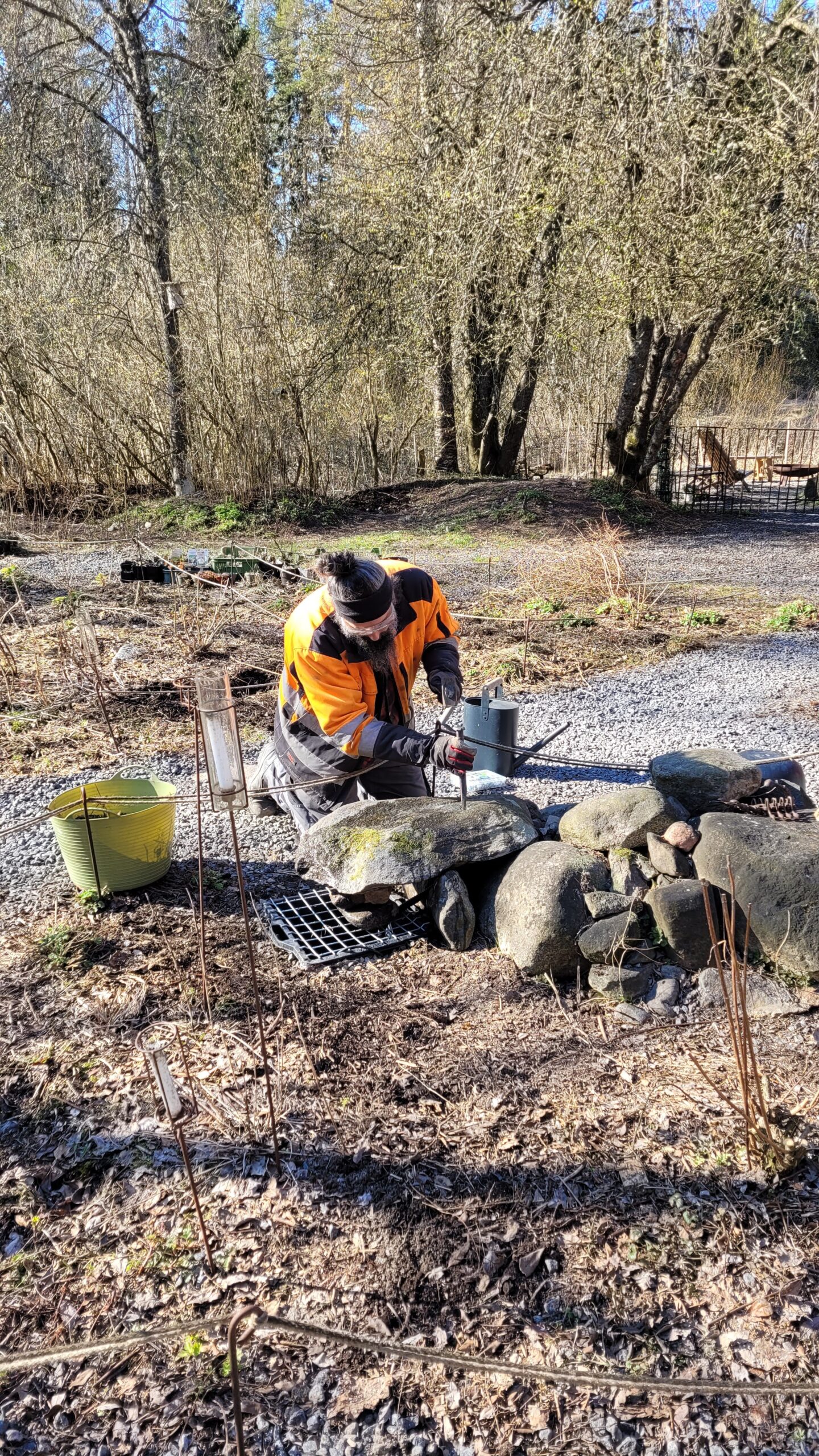 Pověsili jsme pár nových ptačích budek, začali připravovat terén pod skleník, a také jsem si po letech toužení pořídila houpací lavici – retro model finské firmy Varax. Dlouho jsem odolávala, protože lavici na sezení na dvoře jsme měli. Ta byla ve špatném stavu, a Pepa ji před pár lety poopravil, nicméně nám ji následně okousala štěňata, a ulomilo se pár dalších špruslí. Pořád půjde opravit, ale už to není projekt na pár hodin + nátěr, ale bude potřeba ji nejspíš celou rozebrat…. s naší morálkou projekt na několik let, no.