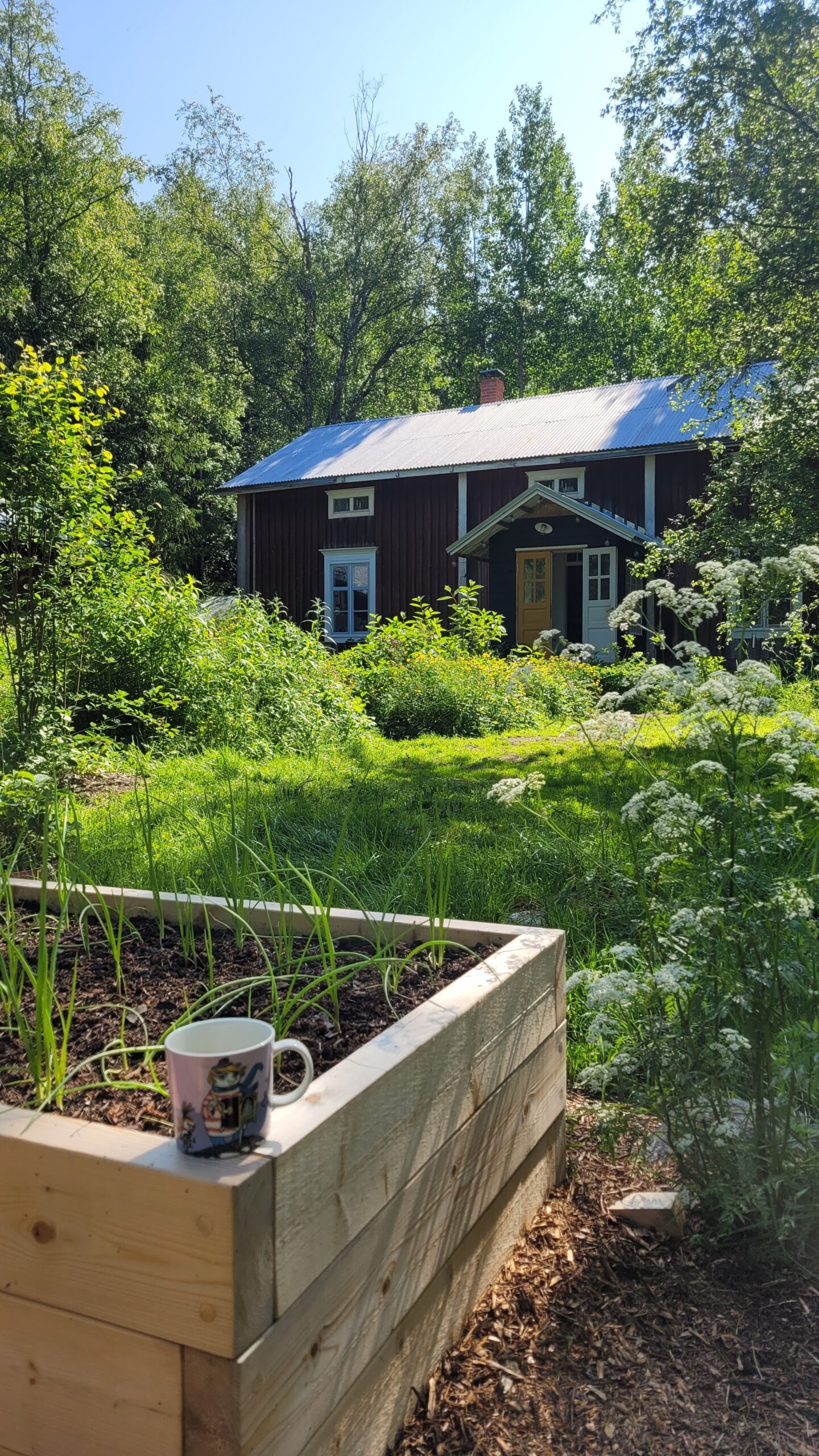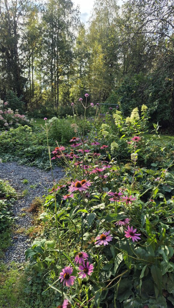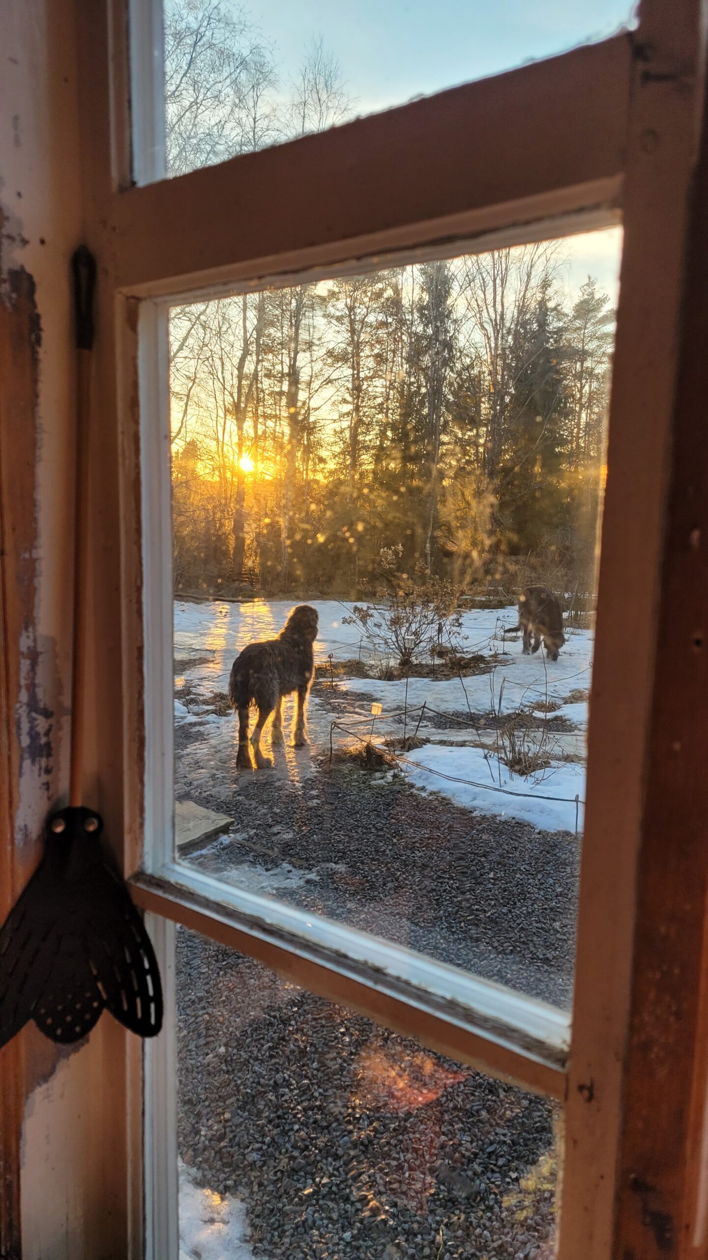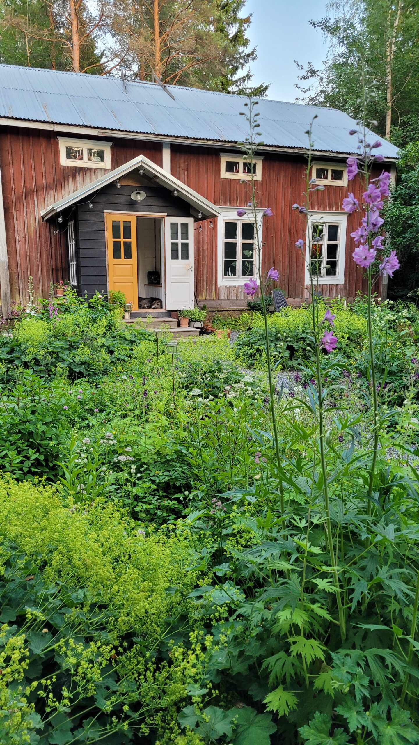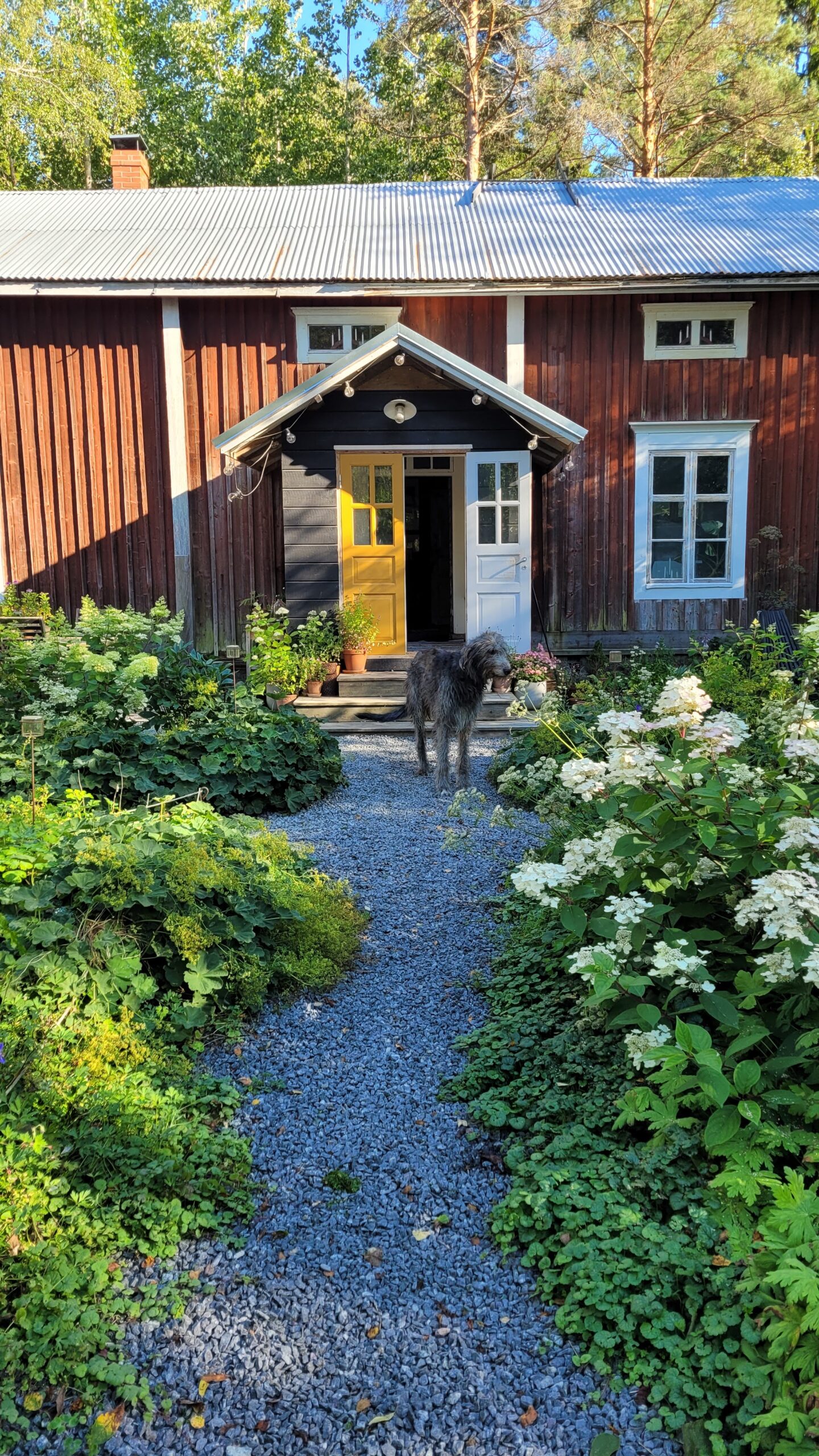 Pověsili jsme pár nových ptačích budek, začali připravovat terén pod skleník, a také jsem si po letech toužení pořídila houpací lavici – retro model finské firmy Varax. Dlouho jsem odolávala, protože lavici na sezení na dvoře jsme měli. Ta byla ve špatném stavu, a Pepa ji před pár lety poopravil, nicméně nám ji následně okousala štěňata, a ulomilo se pár dalších špruslí. Pořád půjde opravit, ale už to není projekt na pár hodin + nátěr, ale bude potřeba ji nejspíš celou rozebrat…. s naší morálkou projekt na několik let, no.